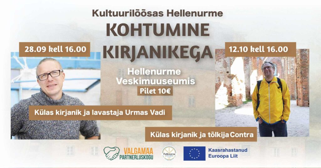Kultuurilõõsas Hellenurme lõõmab edasi sügisel, siis, kui tuuled puhuvad ja vihma rabistab. Veskisse tulevad viiel pühapäeva pealelõunal külla tuntud ja tunnustatud kirjanikud. Esimesed kaks on teie ees: